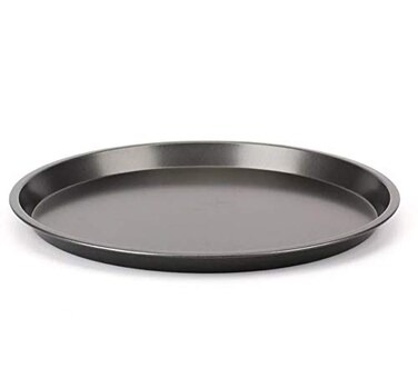 Grizzly Carbon Steel Pan Non Stick Round Plate Cake Pizza Tray Baking Mould (26 x 26 x 1.5 cm, Black)