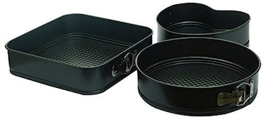 Haneez® Non Stick Cake Baking Moulds, Set of 3, Black (10", 9", 8") Steel Cake Square, Round and Heart Shape Making Tray
