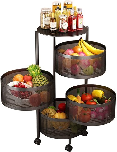 Convenient-Rotating basket design, Rotary to receive more convenient, use varied, Baskets can be removed from the storage rack stand and place on the counter top. It can also stacks upon each other, which is convenient to collect and save storage place.