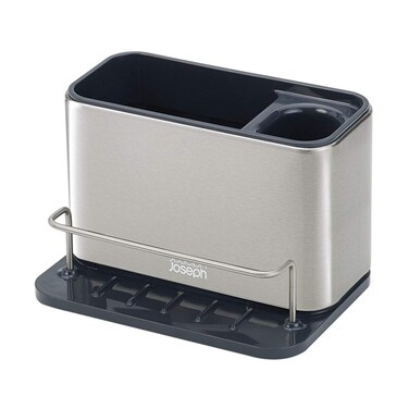 - Joseph Joseph Surface Sink Caddy is perfect for organising your washing up essentials. The main compartment is divided into two and has plenty of space for your washing up liquid and a dish brush At the front of the unit, there room to store a variety of wet sponges or scourers, which are held in place by a handy integrated rail This stylish fingerprint-proof stainless sink tidy features a sloping base which allows any excess water to collect inside for easy draining later It also can be dismantled for cleaning About Joseph Joseph Founded by twin brothers Richard and Antony Joseph, Joseph Joseph is an English houseware manufacturer that is best known for its design-led kitchen and cooking products.