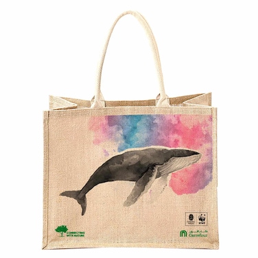 The Carrefour Whale Printed Juco Bag Multicolour is a stylish and eco-friendly bag that is perfect for carrying your essentials.