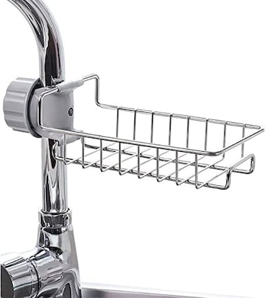 Installed on the kitchen sink or bathroom faucet,space-saving,makes kitchen clean and tidy. Open drain holes design,holds sponge,cloth,scrubbers,soap and so on.keep them dry and clean.