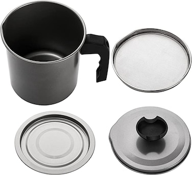 Kitchen oil container: the pot body is made of quality iron material, which is resistant to corrosion and high temperature; The fine mesh strainer of oil container pot is made of stainless steel, durable and reliable, which can filter out the residue in the oil and help you make better use of the cooking oil