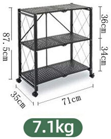 - 3/4/5-Shelf Microwave Bakers Rack with Universal Wheels, Foldable Storage Shelf Heavy Duty Shelving Unit Floor-standing Kitchen/Bathroom/Living Room Black, 3 tiers