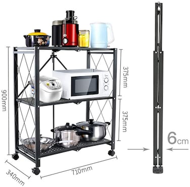 - <p>Foldable: It's foldable, easy to storage and portability, unfolds in under 5 seconds.<p>Moveable: With 4 professional grade caster wheels for easy mobility.<p>Strong bearing: High-strength carbon steel material, good quality and strong bearing.<p>Smooth surface: Sscratch-resistant, waterproof and easy to clean.<p>Dimensions (Inches): 71cm L x 34cm W x 90cm H<p>Product Dimension:Color:B-3 Layer<p>Product Features:<p>Foldable: It's foldable, easy to storage and portability, unfolds in under 5 seconds.<p>Moveable: With 4 professional grade caster wheels for easy mobility.<p>Strong bearing: High-strength carbon steel material, good quality and strong bearing.<p>Smooth surface: Sscratch-resistant, waterproof and easy to clean.<p>Dimensions (Inches): 71cm L x 34cm W x 90cm H