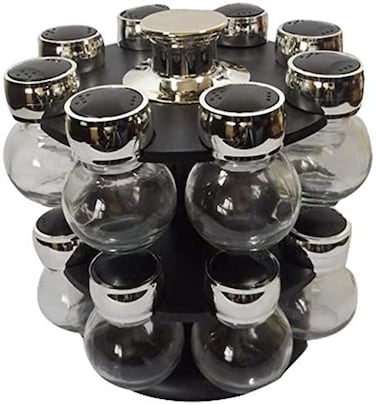 Other 16 Piece Glass Jar Spice Rack Set - Silver
