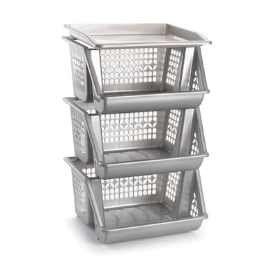 Plastic Forte Stackable 3-Tier Vegetable Rack, Silver