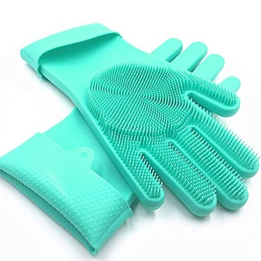SolidScrub Magic Silicone Gloves scrubbing Gloves for Dishes, dishwashing Gloves with scrubbers, Dish Gloves for Kitchen, car wash, and pet Care 1 Pair, 2 Gloves (Green Blue/Aqua)