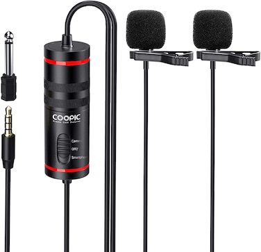 COOPIC CP-KK1 Pro Dual Lavalier Omni-directional Lavalier Mic Lapel Clip-on Condenser Microphone for Camera, DSLR, laptop, Guitar, interview, YouTube, Rap, and Vlog