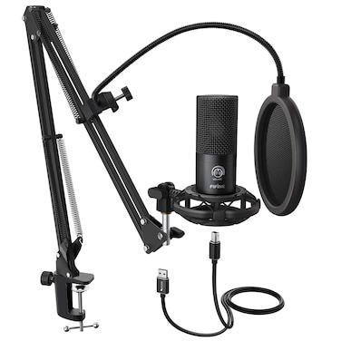 - 【USB Output】Enables simple setup. USB Microphone Kit provide a direct convenient plug-and-play connection to Mac and Windows computers without any additional hardware for recording vocals, podcasts and Skype. It's never been easier to get high-quality sound for your voice and computer-based audio recordings. 【Excellent Sound Quality】With rugged construction for durable performance, the vocal microphone offers a wide frequency response and handles high SPLs with ease.Ideal for project/home-studio applications.The cardioid condenser capsule offers crystal-clear audio for communicating, creating and recording.Comes ready to go with a desktop mic stand and 2.5M USB cable,you're guaranteed to get great-sounding results. 【Durable Arm Set】Studio Microphone with versatile and sturdy broadcast suspension boom scissor arm gives you great tools for capturing your voice in a podcast or voiceover.The Double Pop Filter provides two layers of dissipation, removes the rush of air caused by vocal plosives,minimizing the popping sounds that can compromise your recording is great for studio as well as home use. 【Easy to Attach】The streaming microphone adjustable boom studio scissor Arm Stand features a heavy-duty combo mount that consists of a sturdy C-clamp and a detachable desktop mount.With 13" fixed horizontal arm and offers a 30" reach.The low-profile,table-hugging design allows on-air talent to perform without facial obstruction to record podcasts or make dubbing sounds for videos, use voice chat in online games or doing business on Skype. 【The Accessory Package Includes】The scissor arm stand is made out of all steel construction, sturdy and durable.a studio-grade shock mount,a double pop filter, premium 9.84' USB cable,a bonus tripod stand, a microphone for podcast recording, a user manual and free Technical Support. One Year Warranty to 2-year extended warranty with online registration.