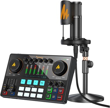 Up to 11 customized sound pads to enhance your podcast atmosphere Built-in quality pre-amps with XLR input and phantom power for Condenser microphones. AME2A features a 3-level mic gain adjustment, supporting ultra-low noise and gain up to 60dB, for connecting high-end dynamic microphones, such as SM7B/SM58, SM58. The 32Bit high-performance chipset and DENOISE function will give you a superior soundquality. Enjoy a personalized podcasting atmosphere Equipment with 6 reverb modes with adjustable time and depth of reverb, 12-step auto-tune, 3-band Equalizer (Treble, mid-range, bass), and pitch-change knobs. Each microphone input is independently controlled. Pro features like sidechain, music only, and loopback switch are also included. Designed for live- streaming You can use the USB-C port to connect your computer or tablet, LIVE-OUTPUT1/2 to connect your smartphone for podcast recording and streaming. Using the MONITOR SPK output you can connect a studio monitor and 2 additional Live outputs are also available. The AUX-IN jack enables you to connect your input accompaniment from a smartphone or other devices. Thru input MIC1/2 you can connect your favorite XLR condenser/dynamic microphone. The AME2A are also equipped with a 6.35mm jack input for connecting a Guitar or Bass and with the included Condenser microphone, the AME2A is a great All-in-One package for your next recording and Streaming.