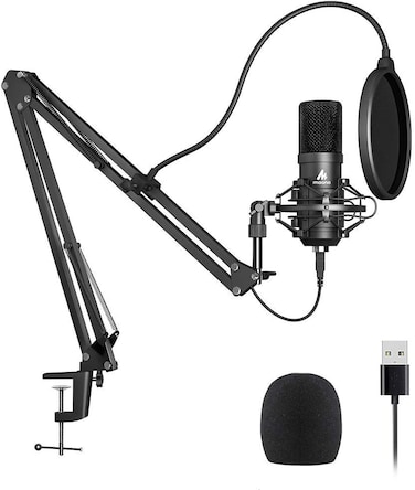 MAONO -- USB Microphone Kit 192KHZ/24BIT Plug & Play USB Microphone Kit Plug & Play -with professional sound chipset, which let the USB microphone hold high resolution sampling rate. Sampling Rate: 192kHz/24bit. With a good cardioid polar pickup pattern, high output and low self-noise function, the microphone can accurately reproduce even the most subtle sound. It is suitable especially for studios, recording, broadcasting, meeting and gaming etc. Whether you need a mic to voice call from home or you need to record outdoors on your phone or computer. Specification: Microphone-core: Dia.16mm Condenser Polar Pattern: Cardioid Frequency Response: 30Hz-16kHz Sampling Rate: 192kHz/24bit Sensitivity: -38dB+/-3dB (0dB=1V/Pa at 1kHz)