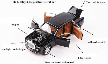 Generic Generic Alloy Car Model 1:24 Car Model For Rolls-Royce Phantom Car Model Boy Toy Diecast Sound Light Toy Six Open Door Toy Car Model Black