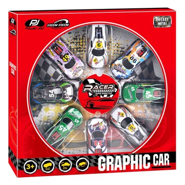 Power Joy Vroom Pullback Graphic Car 8 PCS