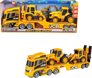 • - Construct the ultimate play time with the Teamsterz JCB Heavy Load Hauler including Fastrac Tractor and Backhoe Loader! - All vehicles are a replica of the real-life trucks in the iconic JCB colours. - The small construction vehicles have manually operated functions: front or rear scoops. - The Hauler includes flashing lights and realistic operating sounds. - Features a manually operated rear ramp to load vehicles safely. - The perfect size for push along play helping to aid the development of your little builder’s cognitive and fine motor skills. - Includes 2 x AA batteries. - Suitable for ages 3 years +.