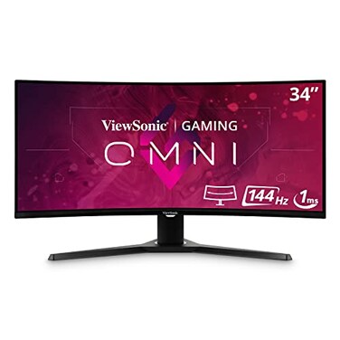 ViewSonic OMNI VX3418-2KPC 34 Inch Ultrawide Curved 1440p 1ms 144Hz Gaming Monitor with Adaptive Sync, Eye Care, HDMI and Display Port