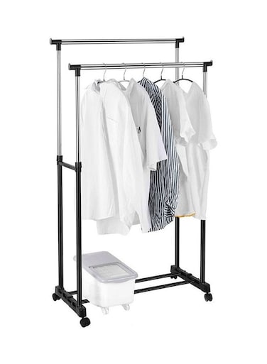 Double Pole Clothes Portable Rack Silver/Black 78x42x160cm