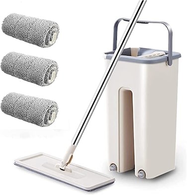 Forget the traditional bucket mops! This self-wash & dry mop and bucket kit will leave your home sparkling clean! With hands-free squeezing, you can use a clean wet mop at all times with greatly improved results.