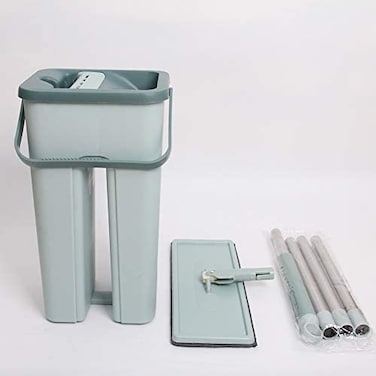 Floor Mop And Bucket set, Avoid Hand Washing - Microfiber Flat Cleaning Cloth (Green)