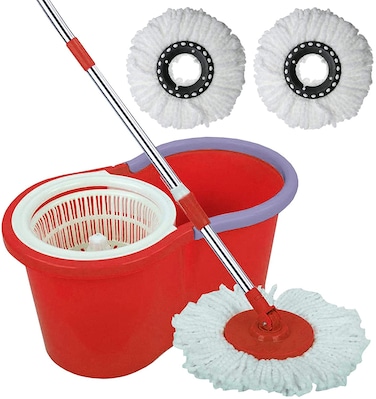 Generic 360 Degree Floor Black Spin Mop Bucket Set Spinning Rotating With 3 Cleaning Dry Heads, Color May Vary