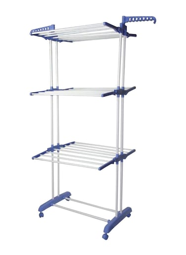 <li></b>Rails on each frame for drying a considerable amount of clothes at once<li>Plastic attachments with holes to place hangers<li>Wheels at the bottom for moving the rack conveniently<li>High-quality and durable steel rails to comfortably hold the weight of heavy wet clothes<li>Folds down for secure storage</br></br><b><u>Features</b></u></br><li>Color Name : White/Blue<li>Material : Metal<li>Model Number : 132.51339941.18