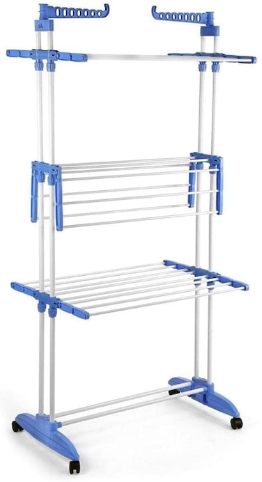 Hexar Three Tier Movable Foldable Steel Cloth Drying Stand With Wheels Laundry Rack Stand