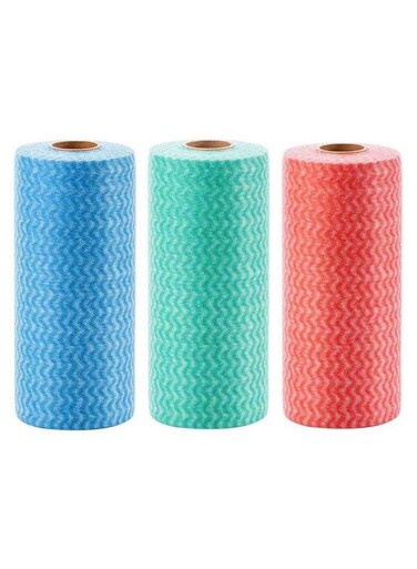 Marrkhor Pack Of 3 Kitchen Disposable Towels Roll Blue/Green/Red One Size
