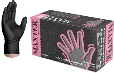 MAXTER Black Nitrile Medical Exam Gloves are designed for use in healthcare, laboratories and other clinical environments. They are powder free and latex-free.