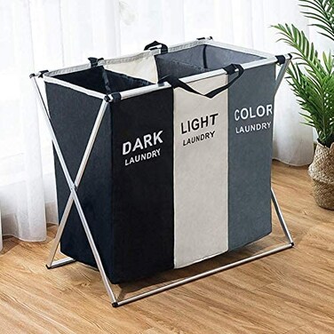 West Pansy Laundry Hamper 3 Section, Large Oxford Fabric Laundry Basket Dirty Clothes Storage Bag Foldable Luandry Sorter With Frame.