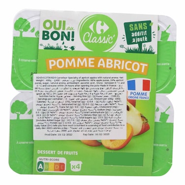 Carrefour Classic Apple And Apricot Fruit Dessert 100g Pack of 4