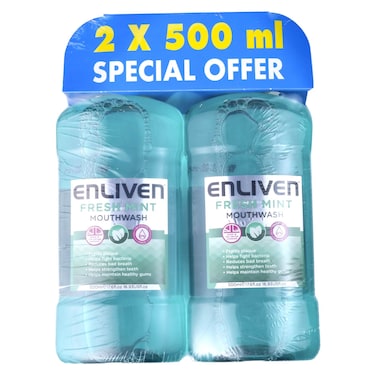 Enliven Fresh Mint Mouthwash Blue 500ml Pack of 2