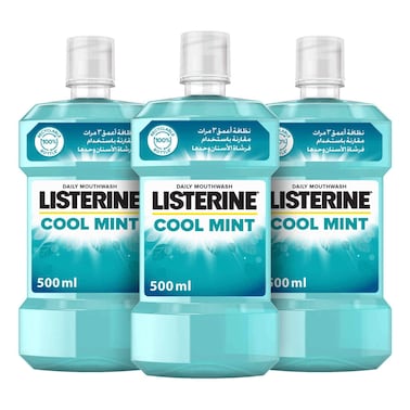 Listerine Cool Mint Daily Mouthwash Blue, helps kill germs, 500ml Pack of 3