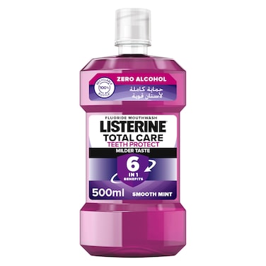 Listerine Total Care Teeth Protect 6 Benefit Fluoride Milder Taste Mouthwash 500ml