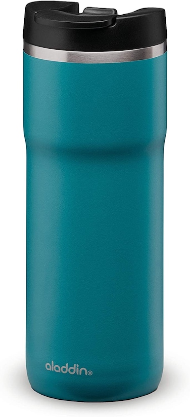 - <p>HOT FOR HOURS: The double wall Thermavac vacuum insulated thermo cup maintains temperatures inside regardless of the temperature outside and keeps your drinks hot for 4 hours, and cold for 6 hours. No sweat or condensation thanks to Aladdin's compact vacuum insulation technology.<p>SUSTAINABLE AND SAFE: EU tested safe reusable tea and coffee cup that is made with durable no-rust stainless steel. BPA FREE. <p>LEAKPROOF: Stainless steel mug with easy-grip durable powder coating and a leakproof flip lid with locking slider to enjoy your favourite drink wherever you go without spilling a drop or loosing flavour and aroma. Can also be enjoyed without the lid thanks to our signature polished steel rim.<p>EASY TO CLEAN: This product is designed to keep clean easily. Every part of this stainless steel travel mug is dishwasher safe, top rack only. <p>SUSTAIN PROMISE: For you and the planet. Every Aladdin product comes with the Aladdin Sustain Promise. So your new product is guaranteed and comes with the latest innovation, quality and social responsibility.