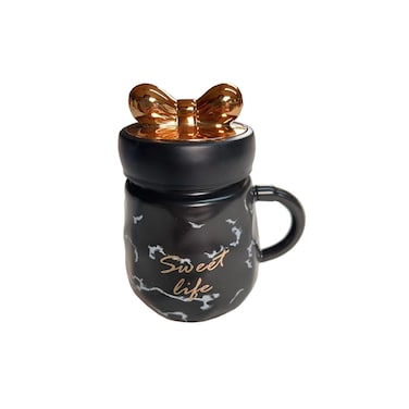 Ceramic Mug With Gold-plated Bowknot Cover Coffee Water Cup