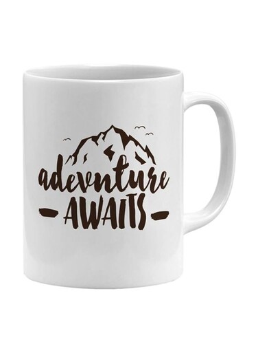 Generic Adventure Awaits Mountain Hike Mug White/Brown 11Ounce