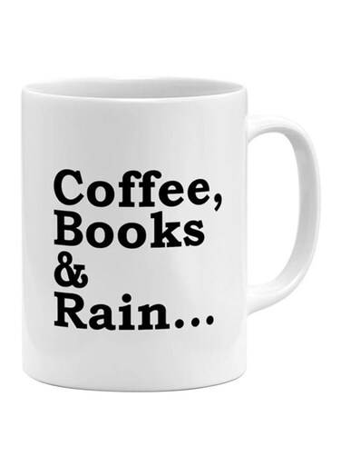 Generic Coffee Books And Rain Printed Mug White/Black 11Ounce