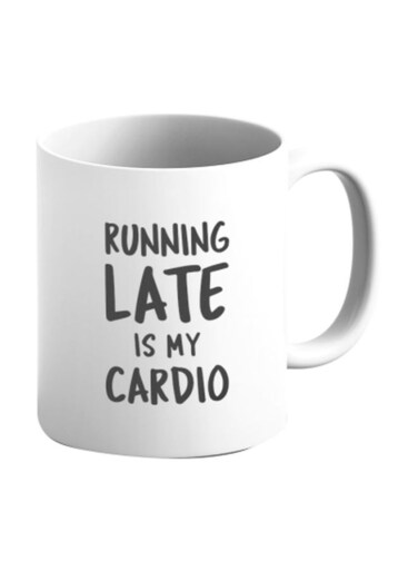 Generic Running Late Is My Cardio Printed Mug White/Grey 8X9.5X8cm