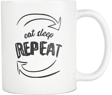 Gex 11Oz Ceramic Coffee Mug, Eat Sleep Repeat, Gift Mug