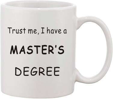 • 11oz white ceramic coffee mug, Master Degree mug, with white paper box packing</br></br><li>11oz ceramic mug<li>Trust me, I have a Master's Degree<li>Gift coffee mug<li>Free shipping for order value over dhs. 60 in our store