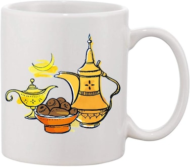 Giftex 11Oz Ceramic Coffee Mug, Traditional Arabic Tea And Dates Design, Eid Gift Mug