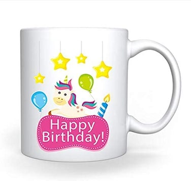 Giftex 11Oz White Mug, Unicorn And Happy Birthday
