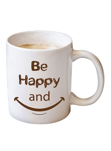 Spoil Your Wall Be Happy Printed Coffee Mug White/Brown