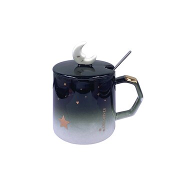 Starry Night Ceramic Coffee Mug set Moon Cups Lid