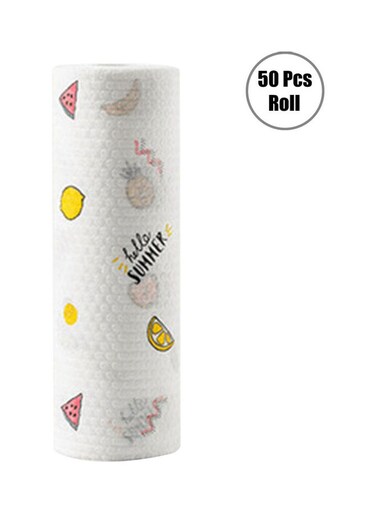 Marrkhor 50-Piece Roll Disposable Dish Cloth Set, White/Yellow/Pink, 25X8X8Cm