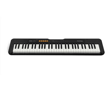- Functions| | Keyboard| | 61 standard size keys| | | Polyphony| | 32| | | Display| | Yes| | | Interface & Ports| | PHONES/OUTPUT jack: Stereo mini jack (3.5mm)USB port: micro B| | | Other Features| | Slim & Stylish Portable Design- With the CT-S100 you can enjoy music whenever and wherever you like. Its compact size of 930 mm x 256 mm x 73 mm is 30% smaller in volume than the CTK-1500 and CTK-1550 models, and it boasts roughly 16 hours of alkaline battery life*. With a grip at the top of the keyboard and a weight of only 3.3 kg, it couldn’t be easier to carry. The design incorporates rounded edges and corners, making it safely portable.Interface easy to use for everyone- The CT-S100 features a simple, intuitive interface, offering an organized layout with fewer buttons.Sound no one would expect from such a compact keyboard- The use of 13 cm x 6 cm oval speakers with strengthened magnets delivers surprisingly great sound for such a compact instrument. An additional function that optimizes the equalizer in tandem with the volume provides balanced sound from the bass to the highs, even at low volumes.| | | Power| | 6 AA-size alkaline batteries or AA-size rechargeable nickel metal hydride batteries| | | | Amplifiers & Speakers| | Amp Output| | 5.5W+5.5W| | | Speakers| | 13cm x 6cm (oval) x 2 (Output: 2.0W + 2.0W)| | | | | | Product Type| | Keyboard| | | Brand| | Casio| | | Model Name| | CTS-100