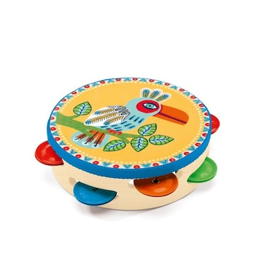 Make music with this multi-coloured Animambo tambourine. Featuring a wooden base with a beautifully detailed bird design, this tambourine makes a great first time instrument.