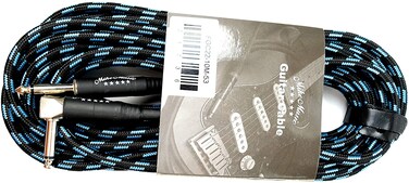 Mike Music 1/4 Inch Tweed Cloth Jacket Right-Angle Guitar Instrument Cable - 10Meter (Blue) (10 meter, Blue)