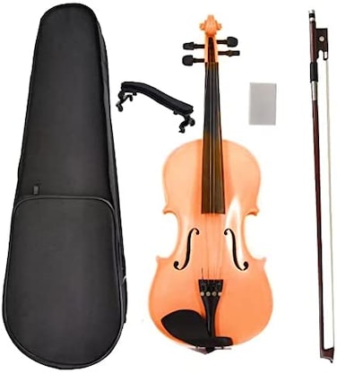 Includes: lightweight hard case, a Brazilwood bow with unbleached genuine Mongolian horsehair, rosin, adjustable shoulder rest, one bridges