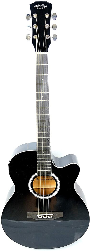 Mike Music 40" Size Acoustic Electric Guitar With 4-Band Equalizer, Adjustable Truss Rod With Gig Bag, Tuner, Extra Strings, Picks, Strap, Cable, Capo, Right Hand (40Inch, Black Glossy)